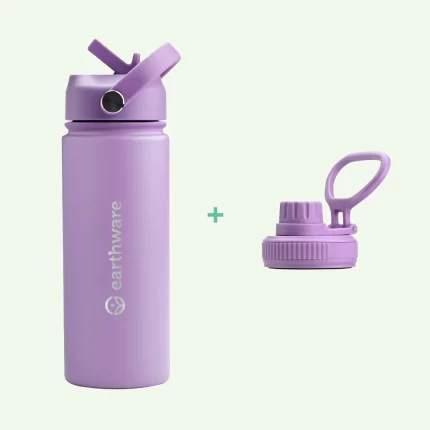 Earth Bottle Premium Insulated Water Bottle with 2 x Caps – Purple (550ml)