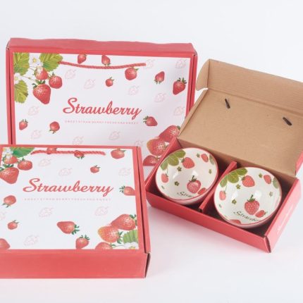 Customizable 4.5-Inch Ceramic Bowl Set Microwave Safe Tableware with Strawberry Pattern Color Box Packaging for Parties Holidays
