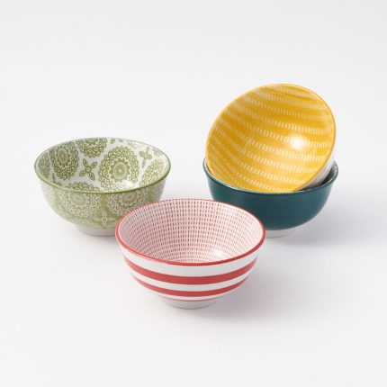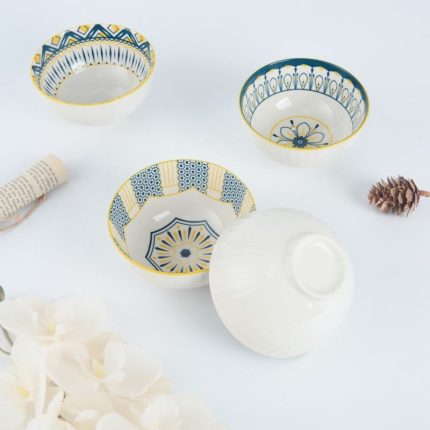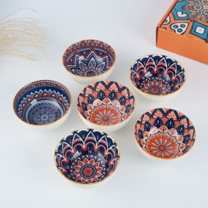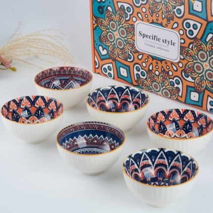 4.5-Inch Bohemian-Style Ceramic Bowl Set Microwave Heating Customizable Color Box Heat Resistant for Party Occasions