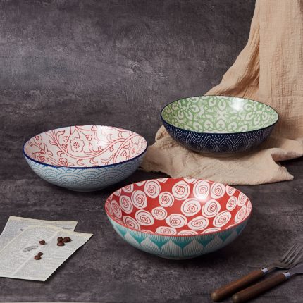 Modern Style Ceramic Colorful Bowl Gift Set Porcelain Household Tableware Rice Serving Bowls for Home Dining Room and Parties